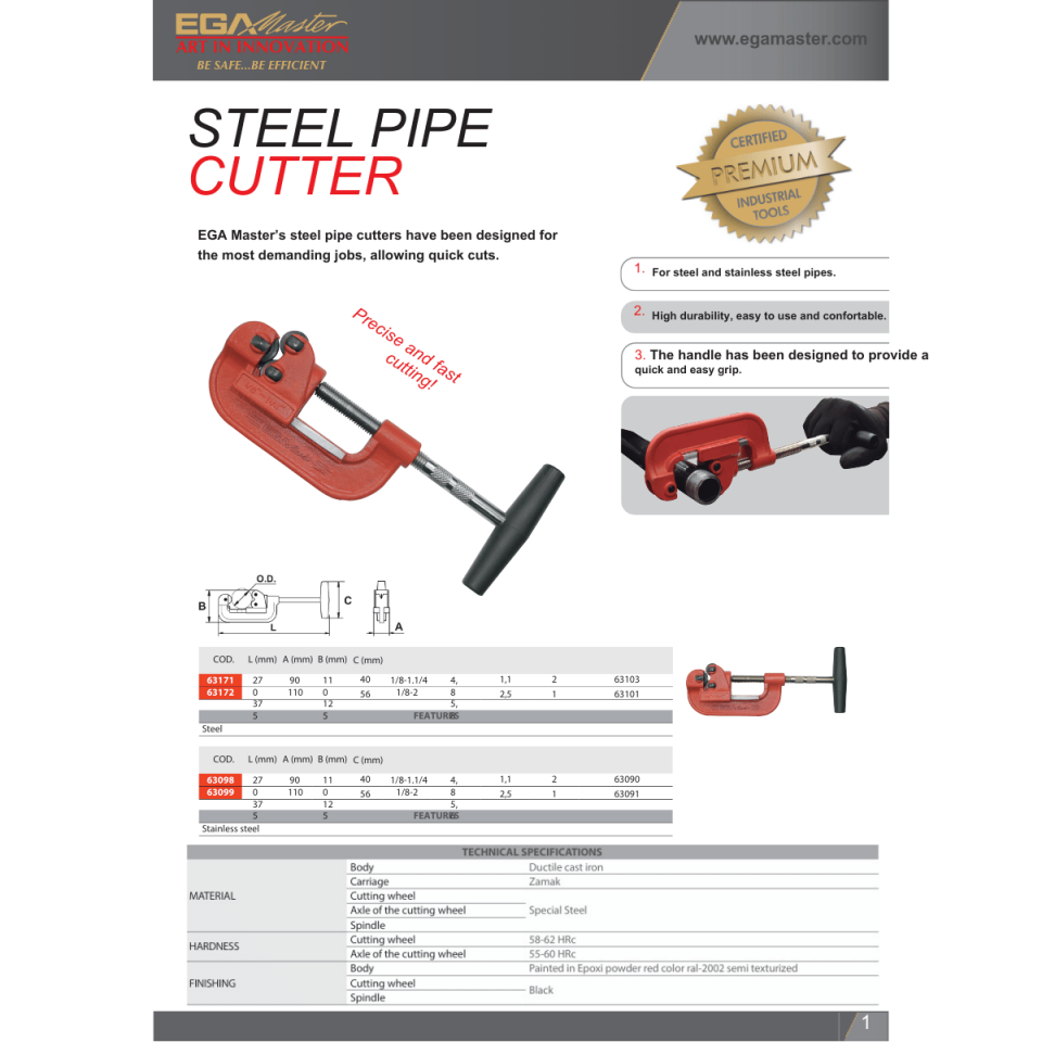 EGAMASTER 1/8-2 inc BORU KESİCİ PASLANMAZ ÇELİK REINFORCED